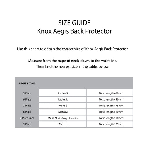 - Plate sizes relate to torso length, so it is important to measure your nape-to-waist length against the attached sizing chart