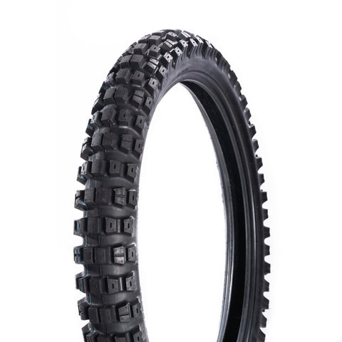 The new Tractionator DualVenture (TDV) is the most versatile front tyre in the Motoz line-up. The tread is unique: Built to uphold the reputation of Tractionator Adventure tyre, the DualVenture uses the same DNA and improves upon it. Deeper tread than most adventure tyres, with distance proven compound specifically formulated to cater for a wide variety of conditions and now offered with a reversible tread pattern to increase longevity. Designed by off-road riders, for off road riders, for serious off-road traction. Technically stronger than many other adventure tyres, it’s built to hammer out the miles. It is aggressive enough of an off-road tire to handle any adventure you choose and smooth enough for any long distance street tour. Its DNA is part desert race tire and part long distance adventure touring tyre · Designed to improve on the performance of the Tractionator Adventure front tyres with better overall performance on road and off-road · Offering a unique reversible tread pattern to improve longevity of the tyre · Non-directional, so when the lugs do begin to wear, simply flip the tyre for new tyre feel and extended mileage · Designed to handle the toughest terrain in Australia, USA, Baja and across the globe providing superior off-road traction and long mileage · Stronger construction than most adventure tyres give world class off-road performance with a high resistance to punctures · Self-cleaning and self-sharpening tread pattern gives excellent predictability and power delivery · Optimised hybrid natural/synthetic compound produces dependable grip in all weather extremes · Superior block and profile design enables larger footprint providing superior off-road traction and high speed cornering · More tread depth than most adventure tyres for better traction in mud and snow · Tested and proven construction and compound for adventure touring use. . Tube tyre