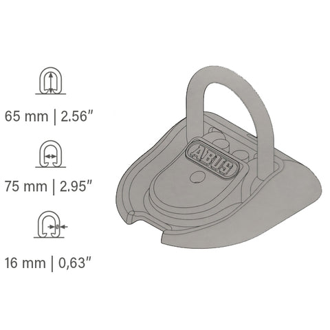 - 16mm thick shackle made from ABUS’s special temper hardened virgin steel