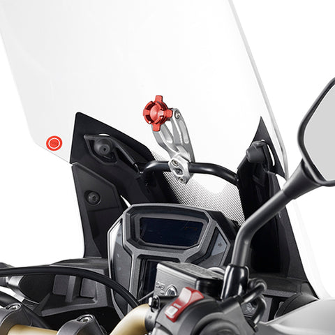 Universal anodized aluminium support for GPS and Smart Phone holders (STTR40SM, SGZ39SM, S952B, S953B, S954B, S955B, S956B, S957B, S958B). Mounts onto motorbikes with a cross piece located behind the windsheild with a diameter between 11.5mm and 14 mm.