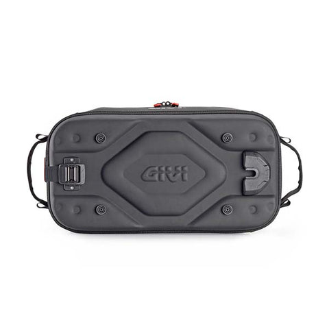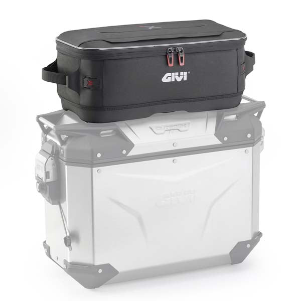 The XL10 from Givi’s X-Line range is designed to work seamlessly with aluminium top-loading panniers. Using an innovative magnetic mounting system, it attaches securely to the case lid and releases with a quick pull of the zip slider. An attachment kit and drilling template are supplied for easy installation.